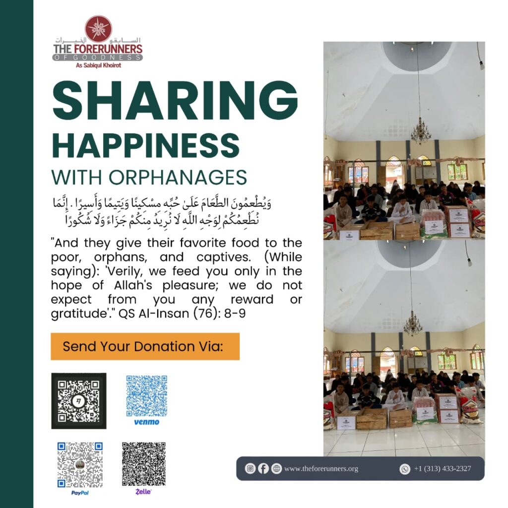 “I and the person who supports an orphan will enter Paradise like this.” The Prophet gestured with his index finger and middle finger and then stretched them (HR. Bukhari).